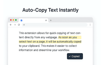 Auto Copy Selected Text — Improved es una extensión gratuita para Chrome que facilita el proceso de copia de texto en páginas web. Diseñada para estudiantes, escritores, investigadores y usuarios de oficina, esta herramienta permite copiar automáticamente cualquier texto seleccionado, mejorando así la fluidez del trabajo diario. Entre sus características destacan la copia automática al seleccionar texto, un sistema de resaltado inteligente y la posibilidad de personalizar los colores de resaltado para una mejor referencia visual.
